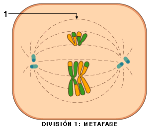 Els parells de cromosomes homòlegs se situen en la part mitjana de la cèl·lula formant la placa equatorial (1).