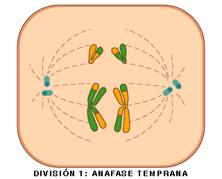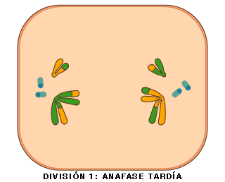 La cèl·lula amb dos nuclis divideix el seu citoplasma en dos, quedant dues cèl·lules filles que entraran en la segona divisió meiòtica.