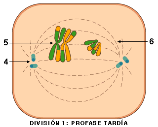 Fins ací succeeix com en una profase mitòtica normal. Les diferències amb la profase normal es donen en el comportament dels cromosomes, ja que aquests abans d’unir-se a les fibres del fus es van movent i s’agrupen per parelles de manera que els cromosomes que són iguals (CROMOSOMES HOMÒLEGS) queden formant parells units cromàtide contra cromàtide; aquesta unió permetrà que es duga a terme el procés més important de la reproducció sexual ja que és el que permet que les generacions filials siguen diferents a les parentals, és la RECOMBINACIÓ GENÈTICA, que consisteix en el fet que les cromàtides dels cromosomes homòlegs que queden juntes s’intercanvien trossos de les seues cadenes d’ADN, apareixent cromàtides noves que abans no existien, les cromàtides *recombinadas, que donaran lloc a l’aparició d’individus adults nous que tampoc existien anteriorment.