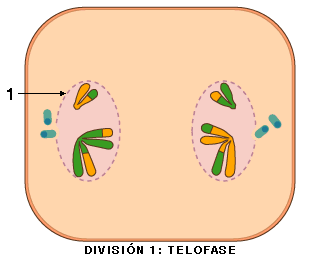 Com en la telofase normal, es pot regenerar novament el nucli (1), iniciant-se immediatament la Divisió II.